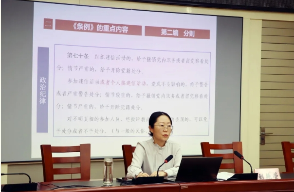 5月11日上午,市財鑫集團舉辦黨委理論學習中心組暨“財鑫大學堂”專題輔導報告會,深入學習貫徹習近平總書記關于黨紀學習教育的重要講話和重要指示精神,專題學習研討新修訂的《中國共產黨紀律處分條例》(以下簡稱《條例》),進一步統(tǒng)一思想、提高認識,推動黨紀學習教育扎實開展。集團領導班子成員及全體職工參加。報告會上,集團黨委委員、紀委書記劉艷榮作了黨紀學習教育專題輔導。在授課中對《條例》修訂的基本情況、主要內容、重要意義和學習貫徹要求等進行了全面深入系統(tǒng)地解讀,為集團全體人員深入學習貫徹《條例》、扎實推進黨紀學習教育提供了有力指導。會議指出,《條例》作為規(guī)范黨組織和黨員行為的基礎性法規(guī),是維護團結統(tǒng)一、完成任務的重要制度保證。集團全體人員要著力增強抓好新修訂《條例》貫徹落實的責任感和緊迫感,把握鮮明特點、吃透精神實質,把學習好、宣傳好、貫徹好《條例》,作為當前和今后一個時期的重要政治任務,作為黨紀學習教育的重點和關鍵,以高度的政治自覺、思想自覺和行動自覺抓緊抓好抓深,切實做到學紀、知紀、明紀、守紀。會議強調,市財鑫集團作為行政事業(yè)性國有資產管理運營單位,要更好發(fā)揮職能作用,嚴格依照各項規(guī)定做好國有資產管理運營。切實推進紀律教育常態(tài)化,加大《條例》宣傳教育力度,把《條例》作為執(zhí)行和維護紀律的基本標尺,引導黨員、干部把遵規(guī)守紀刻印在心、外化于行,自覺做到忠誠干凈擔當,為企業(yè)高質量發(fā)展提供堅強紀律保障。供稿:綜合辦公室