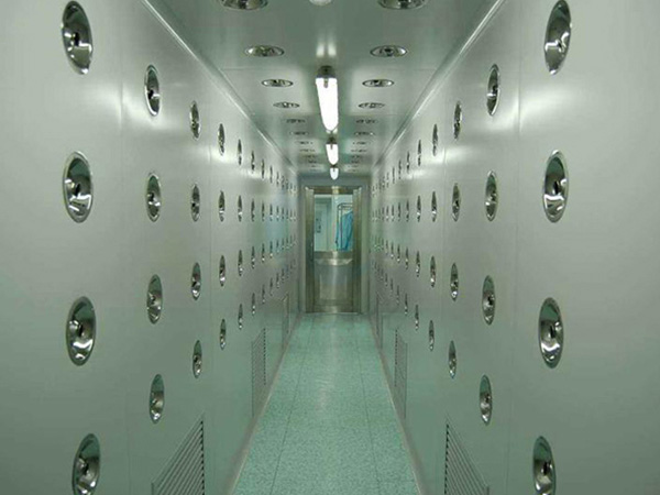 5 空氣吹淋室應設在潔凈區(qū)人員入口處,并應與潔凈工作服更衣室相鄰。單人空氣吹淋室按最大班人數每30人設一臺。潔凈區(qū)工作人員超過5人時,空氣吹淋室一側應設旁通門。